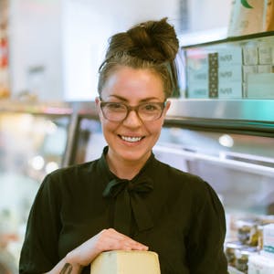 Lydia Clarke comes from an eclectic background as a professional figure skater, painter, and dog wrangler before coming back to her family dairy roots and making a career in cheese. Her work in theory and design for the MOMA and private projects led her from New York to Paris to Napa then back to Los Angeles where she opened a cheese + wine store with her sister, Marnie, in Claremont, California in 2010. On the heels of the success of their first store she, along with her sister and Chef Reed Herrick opened DTLA Cheese and Kitchen in the historic Grand Central Market in 2013. Lydia has developed and designed cheese programs for restaurants and chefs around Los Angeles and creates stunning and elaborate cheese installations for all occasions. Her love for flavor and excitement about cheese will inspire you to celebrate the beauty in every cheese!
